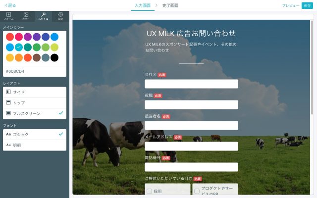 ではさっそく、導入してみましょう。今回は前述のとおり、UX MILKの広告問い合わせフォームを作っていきたいと思います。