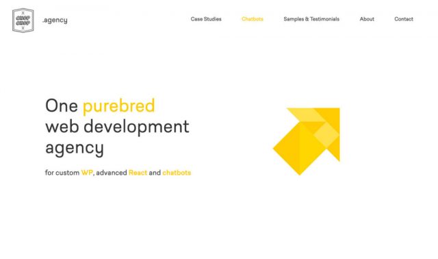 2018年においてもっとも目立ったWebデザイントレンドの1つは、図形のレイヤーや多角形といった幾何学的なテーマを扱ったものです。恐らく実際のデザインを見れば、このスタイルだと特定できるでしょう。正確な定義では、多角形とは、主に3~5本の直線から成る閉じた図形のことです。下図のような浮遊する三角形や四角形も含まれますが、この定義に沿った独創的な図形もあります。