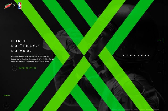 上記のESPNのように、スクリーン全体を埋めるのではなく、独創的ながらシンプルな図形を使う会社も多いです。この方法にはほかにも細かな利点があります。たとえばESPNの例では、傾いた図形を使うことで視覚が自然に誘導され、全体として流動的な画面を作り上げています。