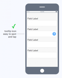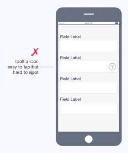 大きいアイコンは、小さいものよりタップしやすいだけでなく、見つけるのも簡単です。つまりツールチップのアイコンは、フォームのレイアウトを崩さない範囲で可能な限り大きくしなければなりません。アイコンが小さすぎると、ユーザーが見つけてタップするのが難しくなります。
