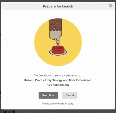 例:MailChimpの例を見てみましょう。MailChimpは、メール配信のプロセスにおいてユーモアを用いてユーザーにちょっとした報酬を与えています。それはなぜか? MailChimpは、メール配信のプロセスが決して簡単ではないことを理解しており、こういったちょっとした楽しみをプロセスに散りばめることで、メール配信のストレスを減らそうとしているのです。