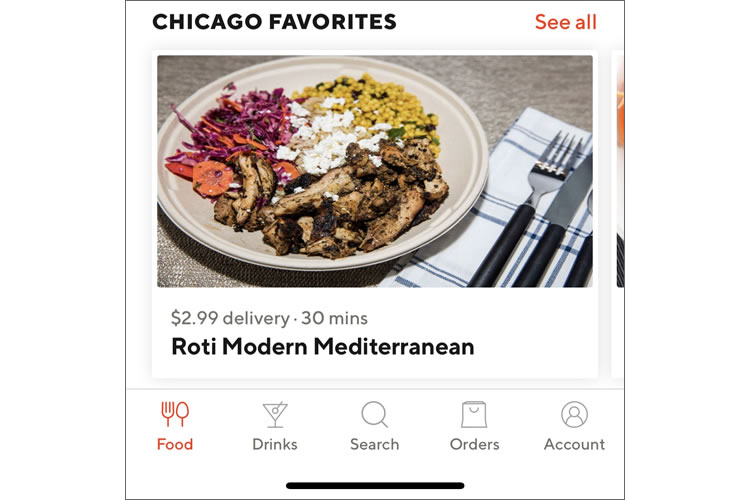たとえば、DoorDashはアプリ上で配達時間を上手に示しています。以下のように、食事を受け取るまでにかかる時間がはっきりとわかります。