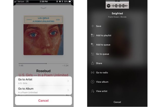 プレーヤー機能におけるもう1つの決定的な違いは、今聞いている曲のアーティストページに移動する際のインタラクションコストです。Appleでは2回のタップだけでたどり着けますが、Spotifyでは2回のタップと1回のスクロールが必要です。