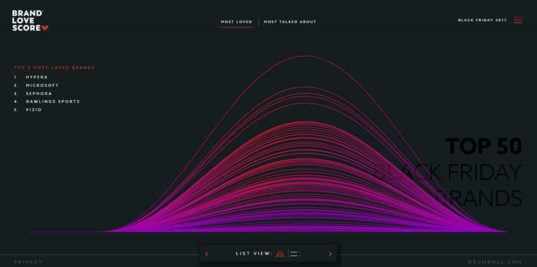 すでに述べたように、Brand Love Scoreは現代的なテクニックでデータビジュアライゼーションを用いたもう1つの代表的な例でありお手本です。