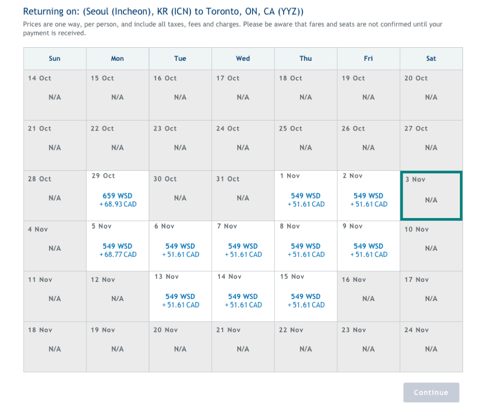 この場合11/3のフライトは予約できませんが、11/2なら良さそうです。