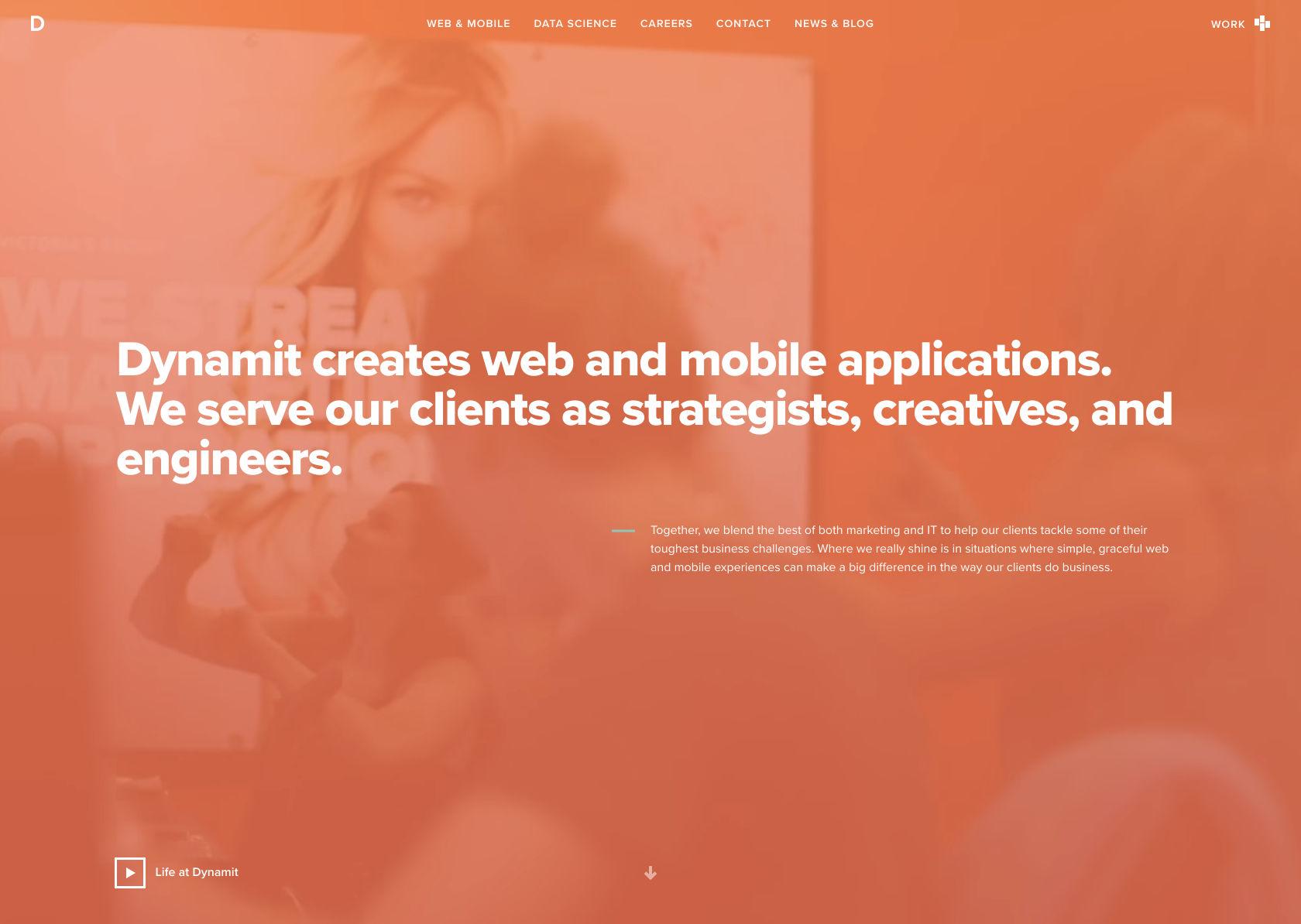 Dynamitはホーム画面の下部に小さな矢印を配置し、ユーザーにスクロールの必要性を示しています。