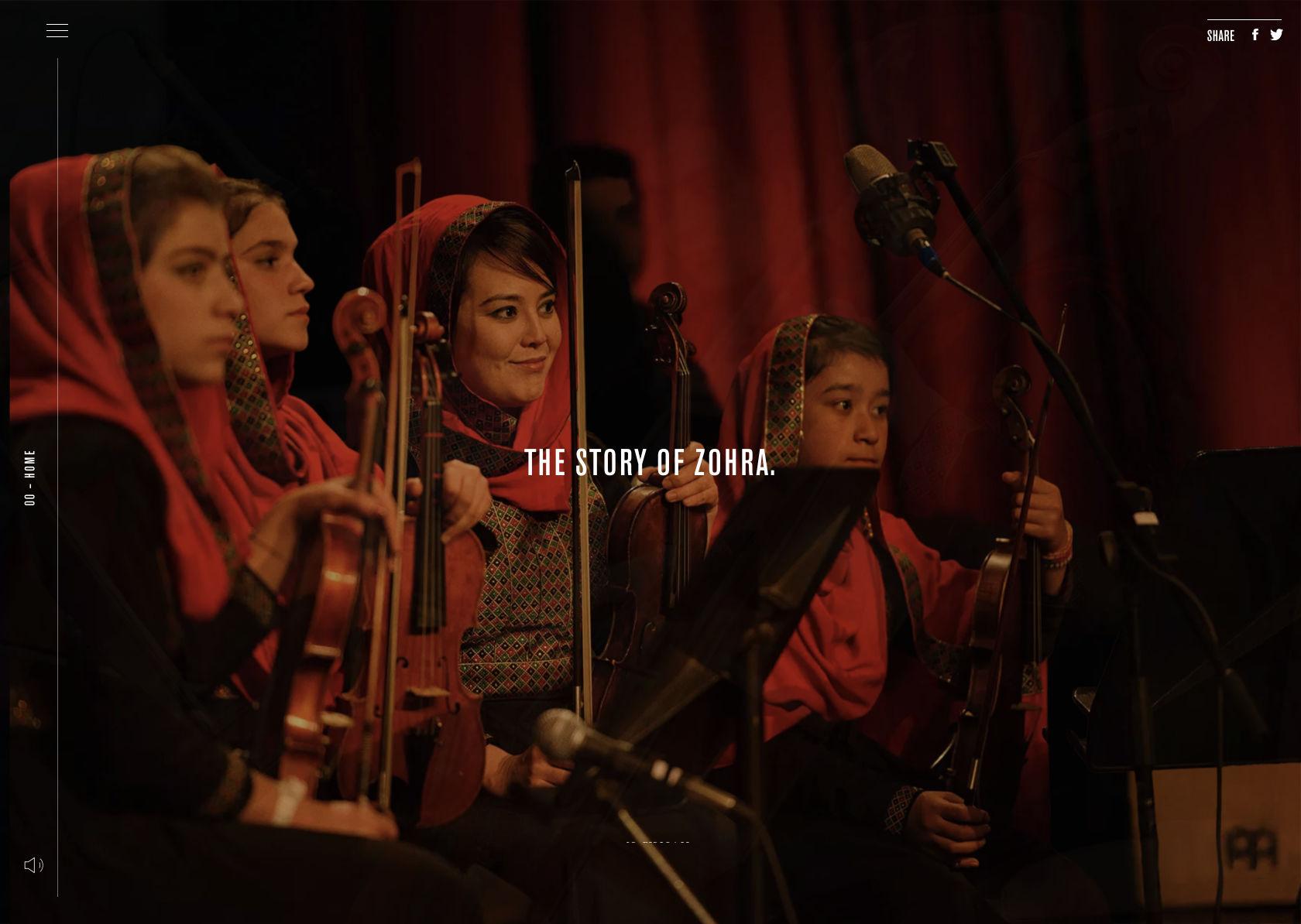 The Story of Zohraのサイトでは、スクロールを始めるときに視覚的なキューが使われています