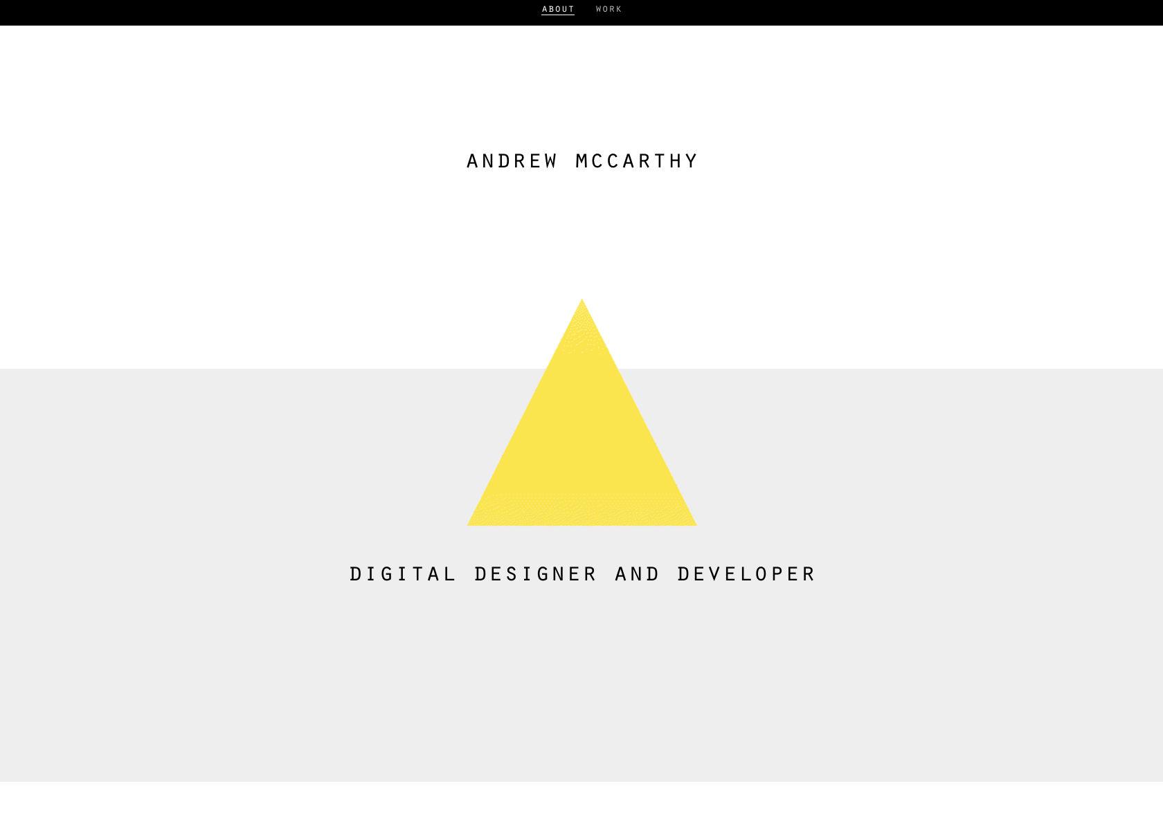 そして以下がAndrew McCarthyのサイトです。デザインはユニークでありながら、同じ情報を何度も表示している無限スクロールです。McCarthyはデザイナーなので、これは周囲との差別化を図るための作品的選択でしょう。