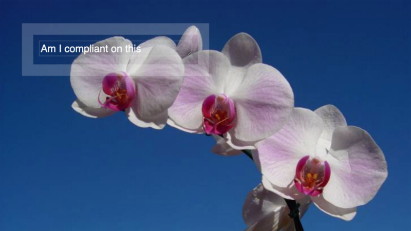 テキストを画像に重ねる場合は、色のコントラスト比をテストし、テキストが読めるかどうかを確認しましょう。