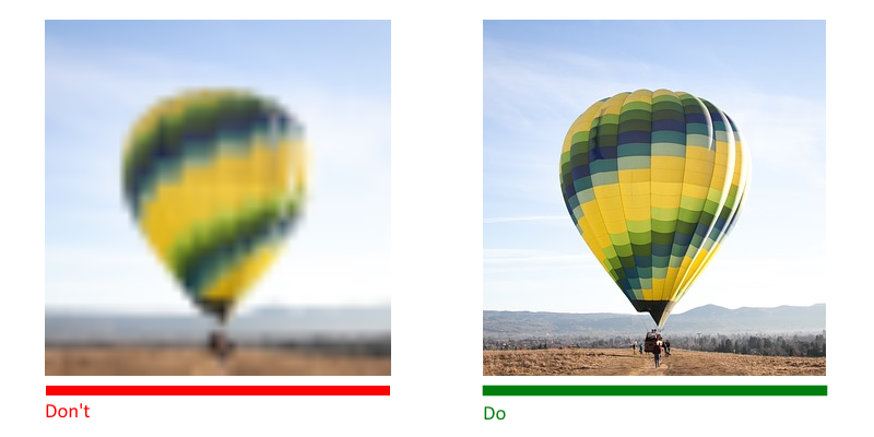 ディスプレイやプラットフォームで全ての画像サイズを最適化しましょう。ぼやけていたり画素の粗いものは使用しないようにしましょう。