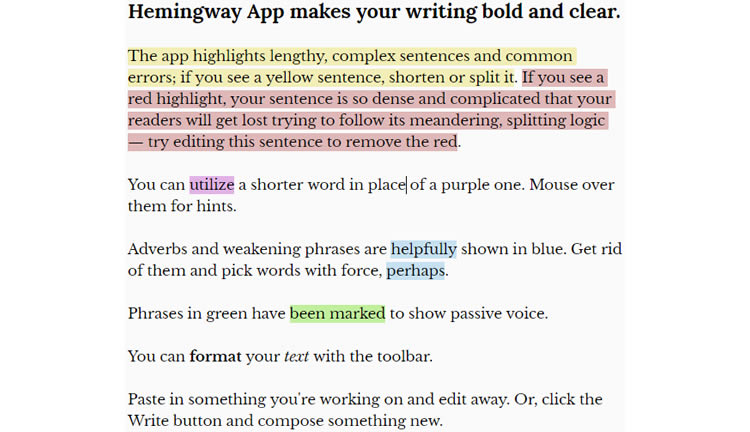 私もクリエイティブに凝り過ぎたり、カッコつけたりしすぎて、ユーザー体験を犠牲にしたライティングをしてしまいそうになることがよくあります。ですからこれに気をつけるために、私はHemingwayというツールを好んで使います。これはオンラインのフリーワープロツールで、同時にライティングのシンプルさと一貫性を計るためにも使えます。