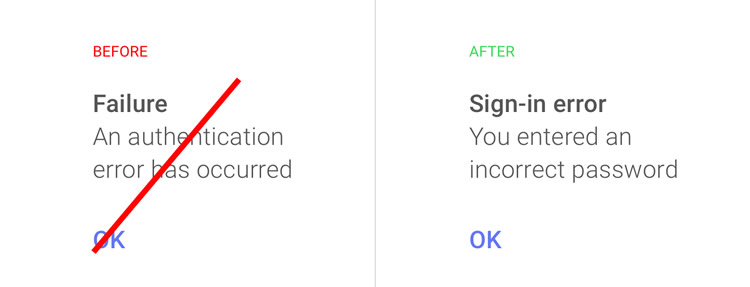 UXに関わる人にとって、シンプルにすることは習慣として自然に身に着けるべきものであり、Sketchを使うときもMicrosoft Wordを使うときでも変わりはありません。あるフレーズの表現をどれだけ好んでいても、またSAT(大学進学適性試験)でしかお目にかからないような難しい言葉を使用できることを誇示したいとどんなに思っても、UXライティングにおける第1のルールは簡潔にすること、複雑にしないことです。