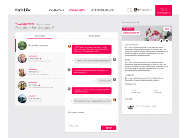 ファッションブランドに対してインフルエンサーマーケティングのプラットフォーム「StyleLike」を作成したときは、潜在的なユーザーにインタビューすることから始めました。インスタグラムのセレブたちと、彼らがブランドとどのように協力していくのかについて大変な議論をしました。