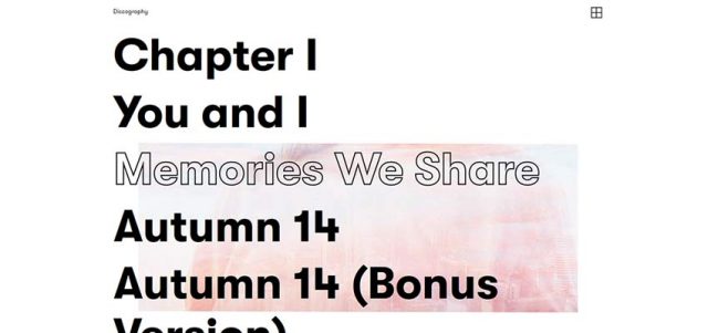 スライダーの細かなこだわりが見て取れます。作品名のリストが、このサイトで1番最初に目に入ることでしょう。タイトルにカーソルを合わせると画像が浮かび上がり、タイトルが黒いソリッドからホローに変化することで選択中の作品がひと目でわかります。こぎれいでスマートなデザインです。