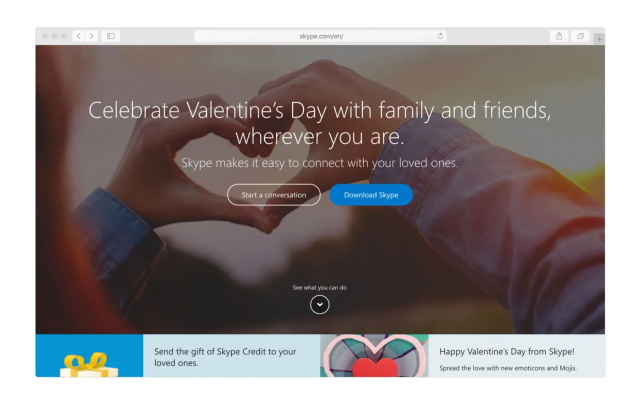 しかし、Skypeとは何なのか知らなかったときのことを想像してみてください。その場合、このページを見たあなたは、「これはソーシャルネットワークなのか? もしかしてeカードを送るためのものだろうか。それともデートアプリ?」と、すっかり混乱してしまうでしょう。
