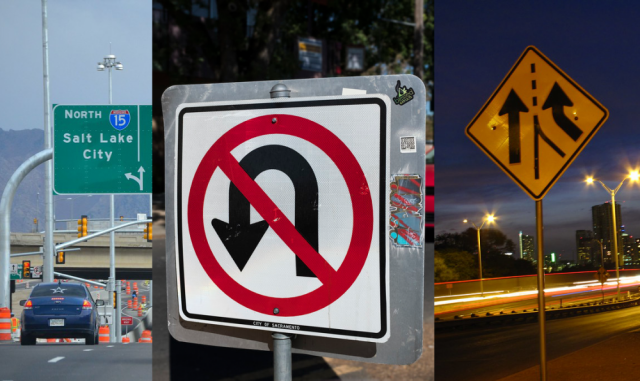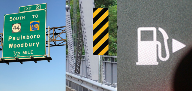 もしくは、道路標識が情報を伝達するもっとも賢い方法は「何気ないヒント」を含むことかもしれません。たとえば、出口車線の名前を示すサインは常に出口と同じ側に設置されているため、どちら側に出口があるのかを暗に知ることができます(豆知識:車のガソリン記号の横にある小さな矢印は、車のどちら側にガソリンの注入口があるかを示しています)。これと似たように、オブジェクトマーカーはどちら側の車線に寄って走行すべきかを斜線の向きで示し、車を障害物から遠ざけています。両者とも非常に見やすく、ただの記号を超えて運転手に必要な情報を伝えています。