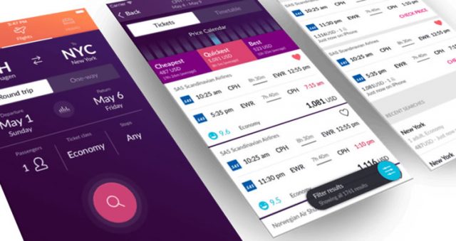 アンドロイドでMomondo Travelアプリを使用してみると、最初に検索画面が輝かしく表示されます。どのトラベルアプリにおいても、検索機能は購入プロセスの大部分を占めており、ユーザーが探している情報へ導く案内役として活躍します。