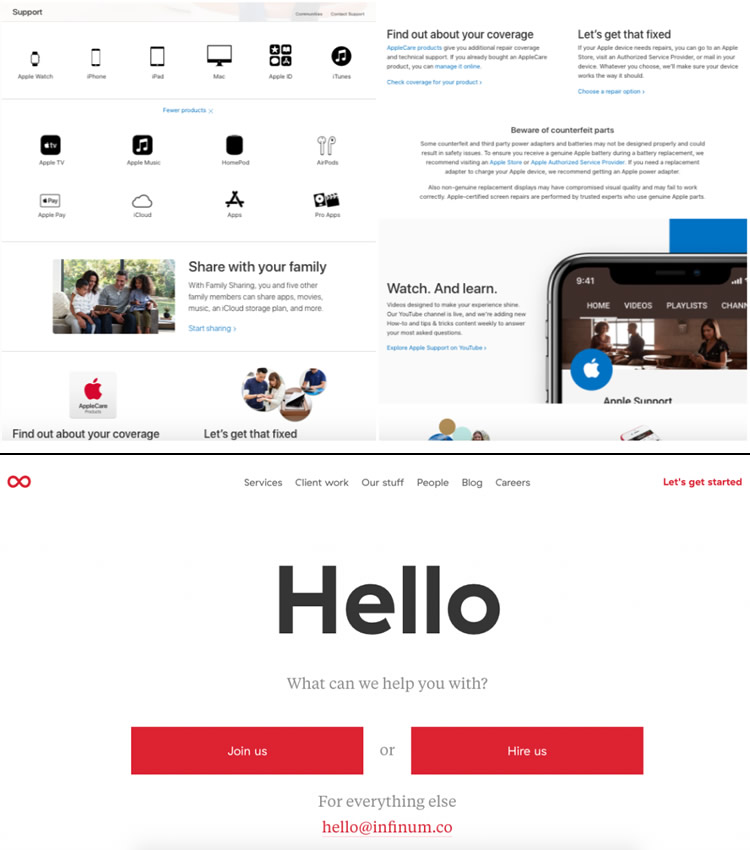 例として、AppleとInfinumのヘルプページを見てみましょう。