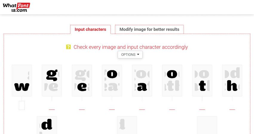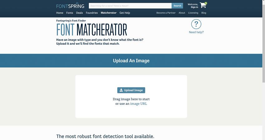 MyFontsには、画像からフォントを特定することができるWhatTheFont という素敵なツールがあります。PNGとJPGの両方の形式に対応しており、133,000以上のフォントコレクションを使って、画像上のフォントにもっともマッチするフォントを見つけることができます。