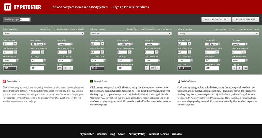 よく知っているフォントであっても、間違いなくこれだと特定できないこともあります。TypeTesterを使えば同時に3つの書体を比較することができるので、あなたは選択肢を狭めることができるでしょう。