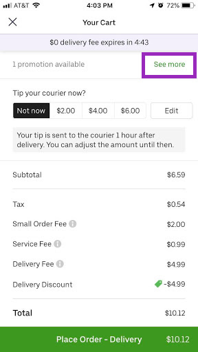 恥ずかしながらヘビーユーザーですので、アプリ内とアプリ外の両方でプロモーションコードを目を皿のようにして探します。Uber Eatsでの注文は今週に入ってすでに4度目となっており、プロモーションコードを使うことは、その罪悪感の若干の軽減に役立ちます。