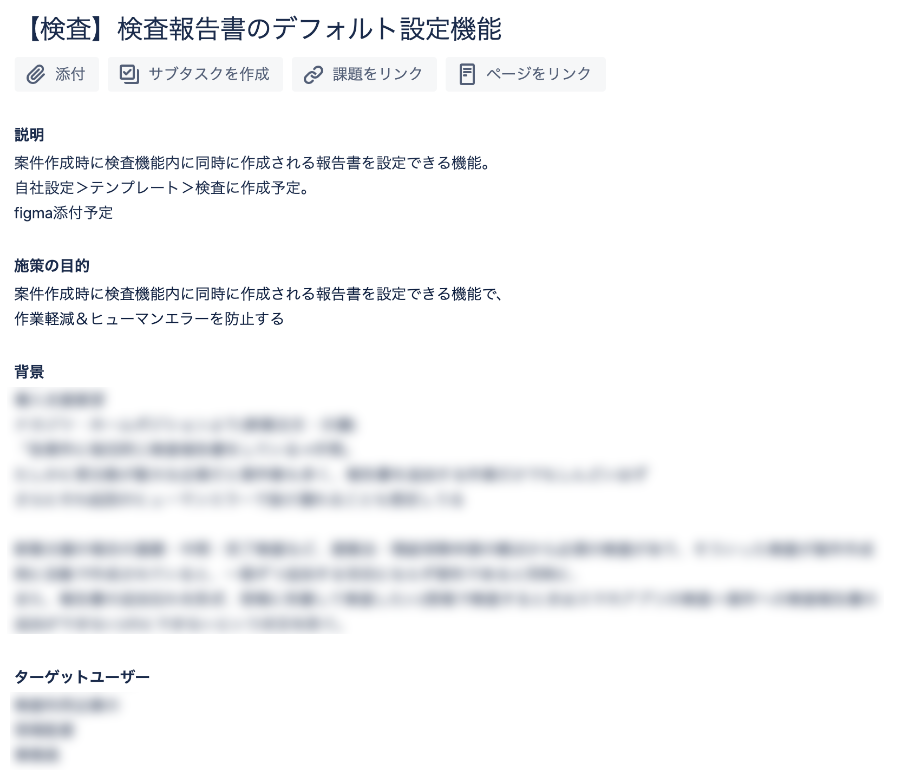 オクトではプロジェクトの初期にデザイナーが「DesignDoc」を記載してからワイヤーフレーム、デザインへ進みます。また社内でJIRAが運用されており、デザイン系のチケットにDesignDocのテンプレートを用意しています。基本的には7つの項目を入力するだけで着手前にタスクが整理できるようになっています。