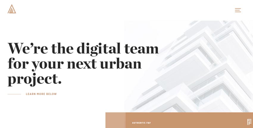 このソリューションに使えるのは動物だけではありません。どのような素材でも有効です。抽象的なロゴであっても、ヒーローエリアに調和するでしょう。次のAuthenticffのサイトをみてください。