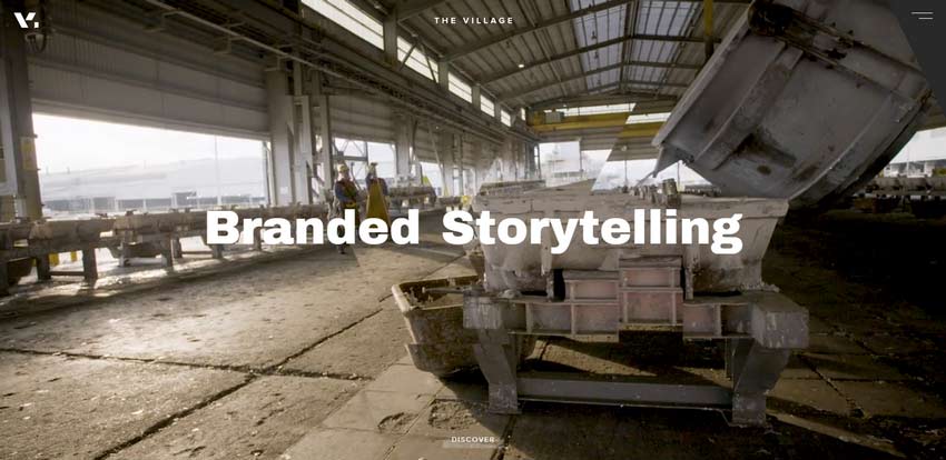 たとえば、Village Filmsの公式サイトでは、透明なマスクのかかったロゴが画面の中心に置かれています。ほとんど見えませんが確かにロゴはそこにあるので、新たなユーザー体験を作り出しています。