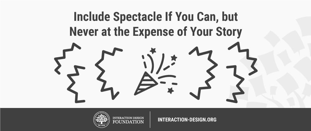 できれば、UXケーススタディに見せ場を組み込むことをおすすめしますが、ストーリーの他の6つの要素を犠牲にしてまで、これをおこなう必要はありません。見せ場は、予期していなかったユーザーインサイトや、大成功と言える結果、または思慮深い教訓によって作られるものでもあります。