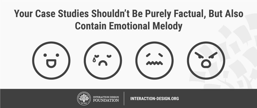 UXケーススタディでは、メロディーは読む人の感情をどのように刺激するかに関連しています。ケーススタディは事実をただ報告するのではなく、採用担当者があなたに興味を持ってくれるようにするためのストーリーであるべきなのです。