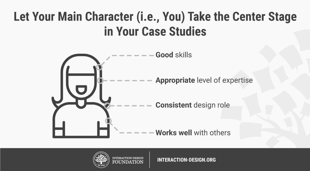UXケーススタディでは、デザイナーとしての自分について、まとまりのあるプロットを伝えるようにしましょう。著者/著作権所有者:Teo Yu SiangおよびInteraction Design Foundation 著作権の条件とライセンス:CC BY-NC-SA 3.0