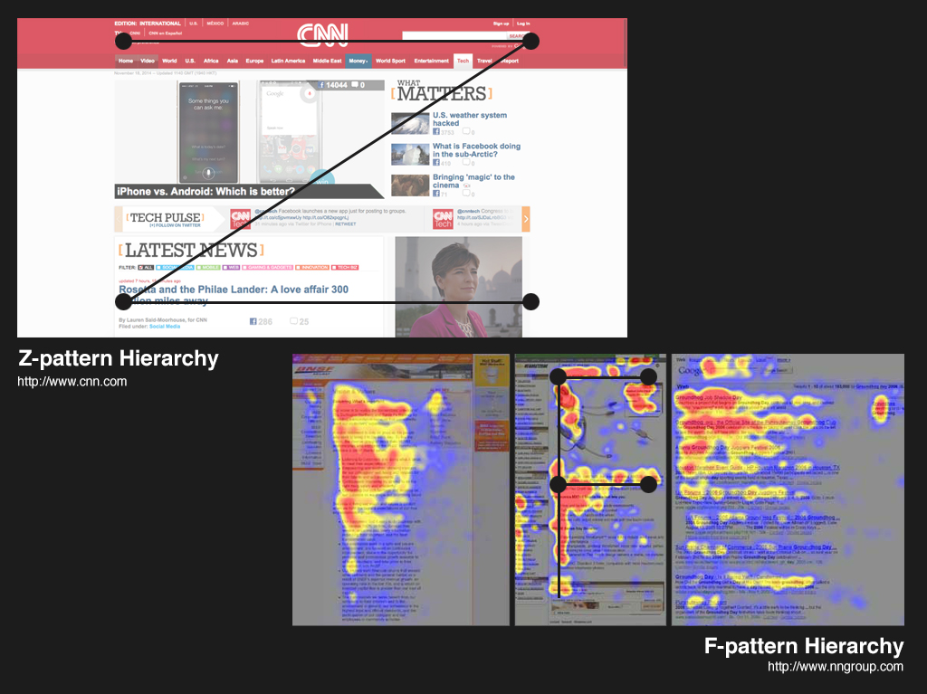 また英語圏においては、2つの一般的なヒエラルキーパターンに従ってデザインを認識します。