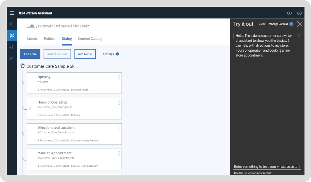 Watson Assistantのような先進的なAIチャットボットは、企業のチャット履歴や通話記録を理解し、独自にナレッジベースをつくることができます。その上、ユーザーに更なる明確化を求めることや、AIには難しいことであればユーザーに助力を求めること、会話の進め方について提案すること、Webサイトのメッセージチャネルやモバイルアプリ、サービスツールを独力で運営することもできます。