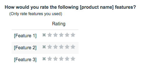 AmazonからAppleのApp storeまで、レーティングはネット上の至るところに存在します。プロダクトやサービスのクオリティを測る際にレーティングは非常に有効なので、これは必然の結果です。全体的な評価とともに、プロダクトやサービスのそれぞれの機能や側面に対する評価もユーザーに求めましょう。