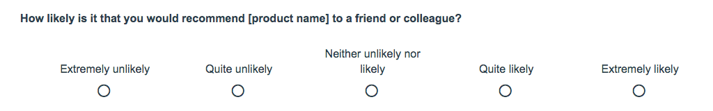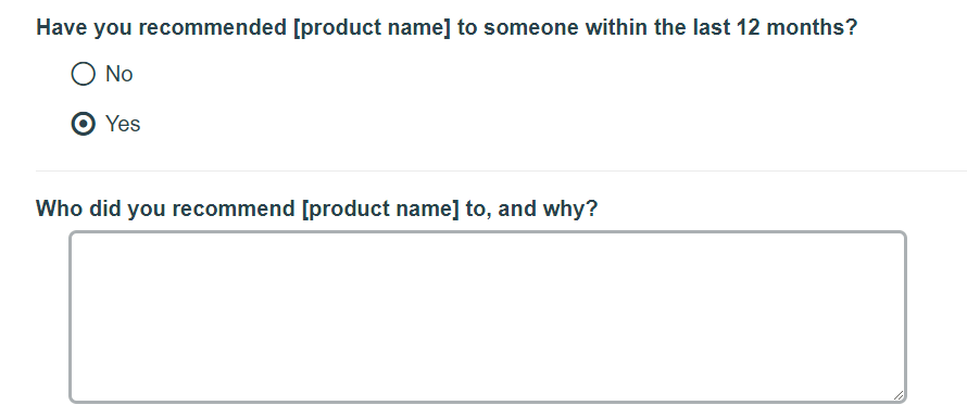 もしすでに利用されているプロダクトやサービスなら、過去に友人や同僚に勧めたことがあるか尋ねることができるでしょう。実際のレコメンデーションのほうが仮定の状況よりも効果的な尺度になります。