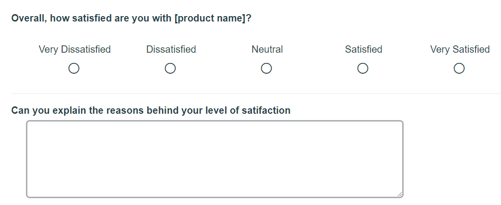 サーベイは、アプリ内のフィードバックやWebサイト利用時のフィードバックと並んで、顧客満足度を把握する効果的な方法です。ほとんどの指標と同じように、評価の数字だけではなく、背後にある理由も理解することが重要です。そのためには、ユーザーが低い評価、または高い評価を選んだ際に説明を求めるべきでしょう。