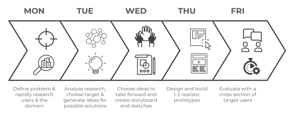 単純に5日間より時間が短いので適切なリサーチや検討、デザイン、プロトタイプ作成やアイデアの評価といったことにかける時間が不十分なのです。