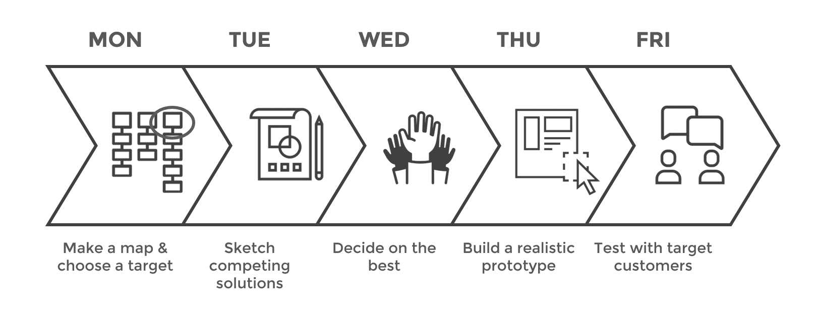 ですが、私の心の奥底には、いつも引っかかるものがありました。UXデザイナーの職業病かもしれませんが、私はどうしても彼らの5日間のスプリントのプロセスがそれほどユーザー中心ではないように思えるのです。どういうことなのか説明していきます。