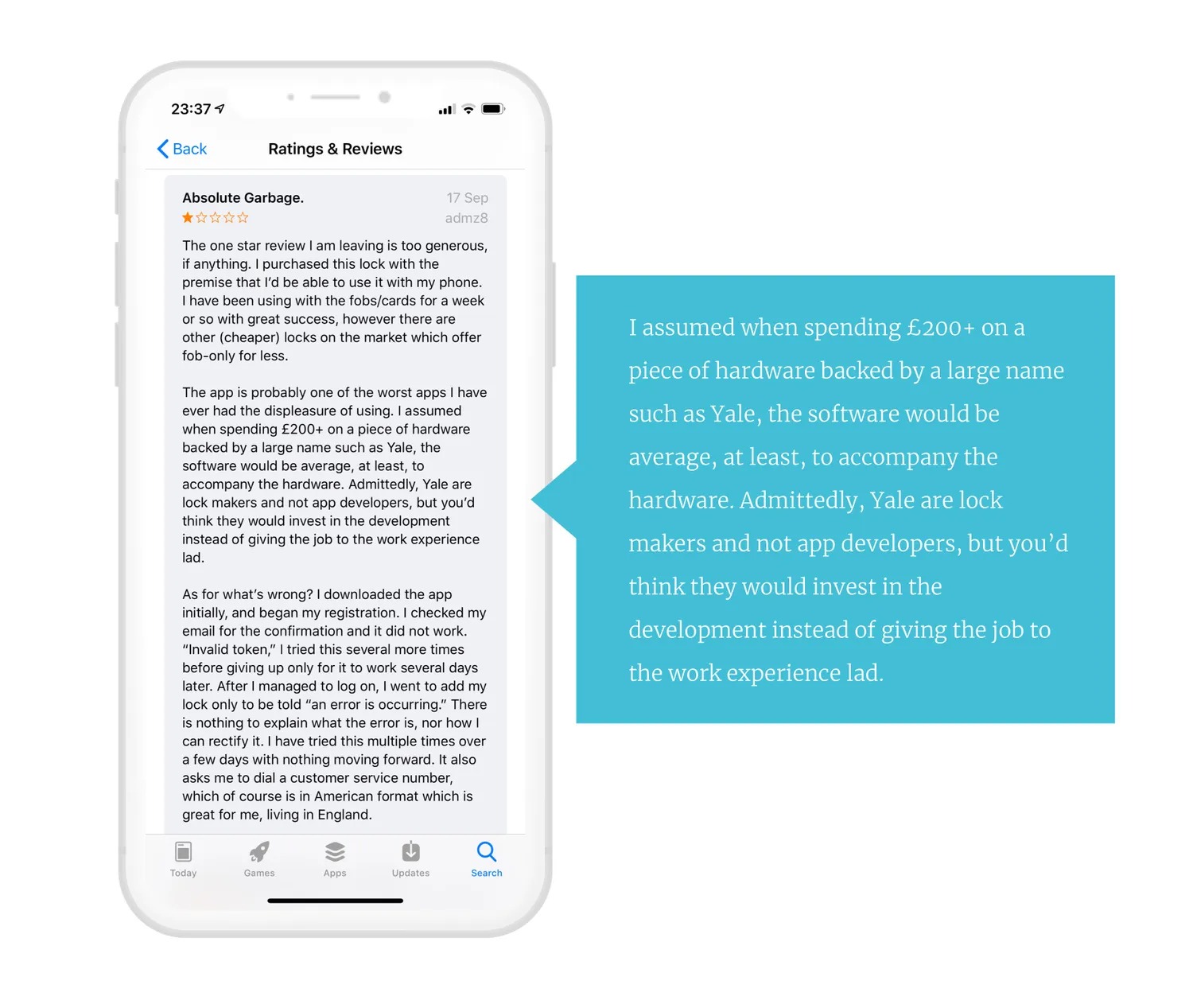 最大の欠点の一つは、これらのスマートホームデバイスに付随するアプリだということがわかりました。アプリストアのレビューをさっと読むだけでも、この種のアプリの程度の低さは明らかです。私個人の経験もそのことを裏付けています。