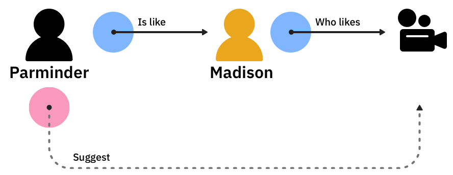 つまり、ParminderとMadisonの特性が似ていて、たとえばMadisonはMovie Xが好きだとしたら、Parminderもまた、Movie Xを好むかもしれないということです。