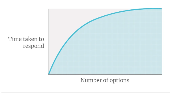 レガシーコンテンツが増えると選択肢も増えます。ヒックの法則によると、選択肢の数と決断までに要する時間には正の相関関係があります。最悪の場合ユーザーは選択肢が多いことによるマヒ状態に陥り、選択自体を辞めてしまいます。