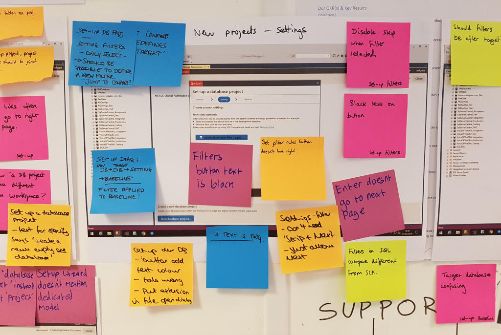 探索的UXテストセッションは、Webサイト、アプリ、さらには実際のプロダクトのUXを探索して評価するだけでなく、ユーザーの観点に立って考えるようにチームを促す素晴らしい方法です。 上の写真は、Redgateの私のプロダクトチームが行った1時間のセッションの中で、初期のプロダクト設計を改善するための潜在的なユーザビリティ問題と、それに対する膨大な数の提案の一部を示しています。 この記事では、探索的U……
